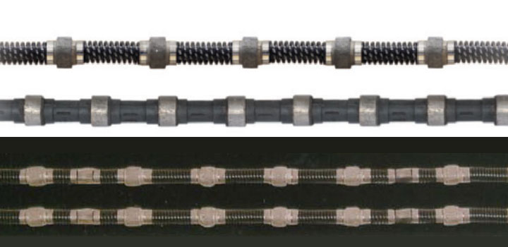 采用橡膠繩主要有如下優(yōu)點:橡膠與鋼繩有更好的結(jié)合力,黏結(jié)得更牢,更能承受惡劣工作中的沖擊;橡膠耐溫性好,可適應(yīng)冷卻水不足時的使用,譬如在水霧狀況下的工作性能;柔韌性強,減少珠子使用中的偏磨,也更適應(yīng)較小的曲率半徑。